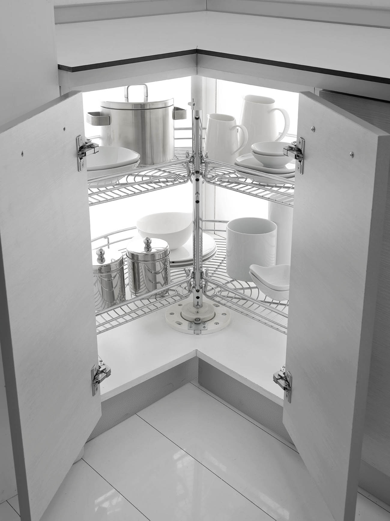 Περιστρέφομενος μηχανισμός INOXA 3/4 αποθήκευσης προϊόντων σε γωνιακό ερμάριο.